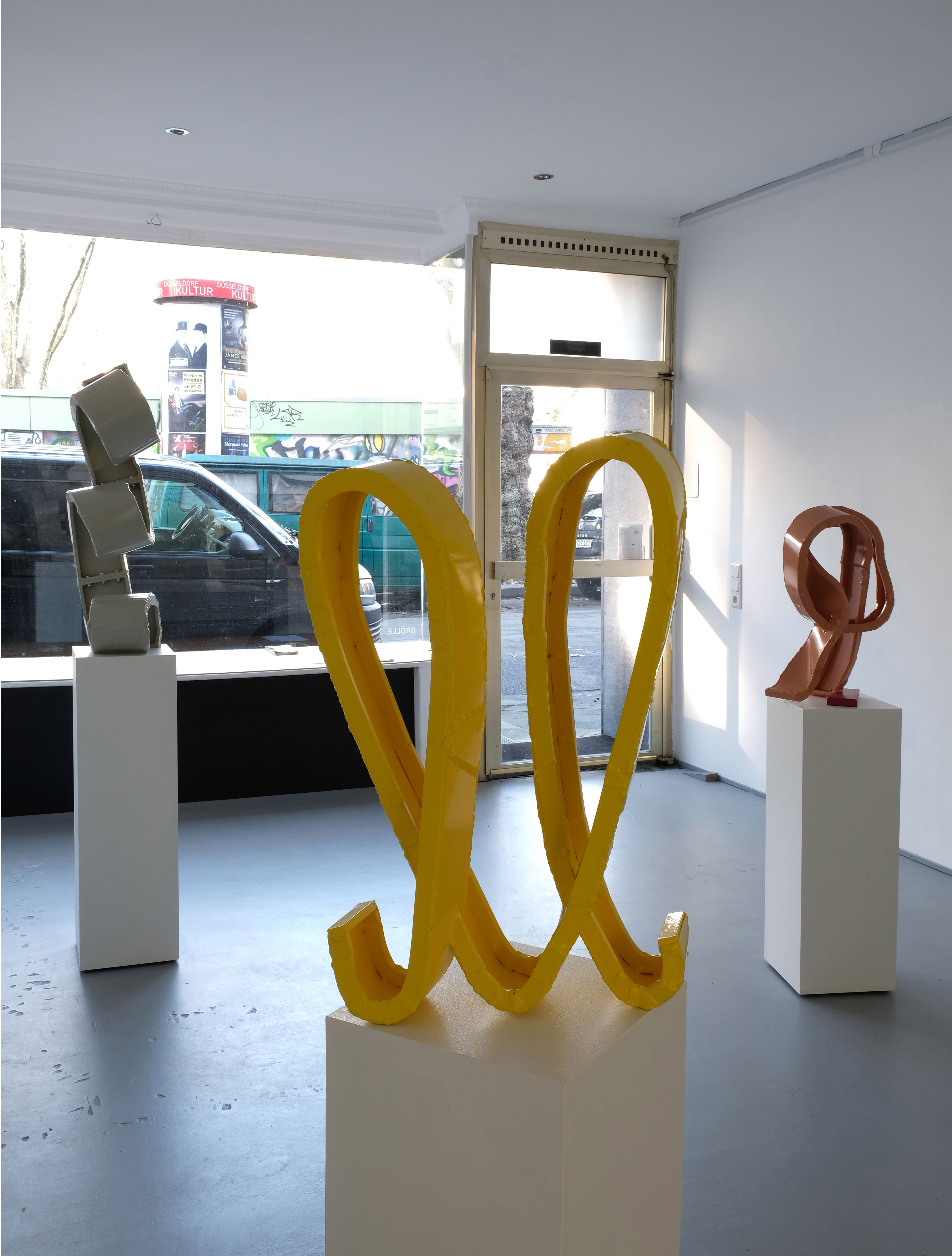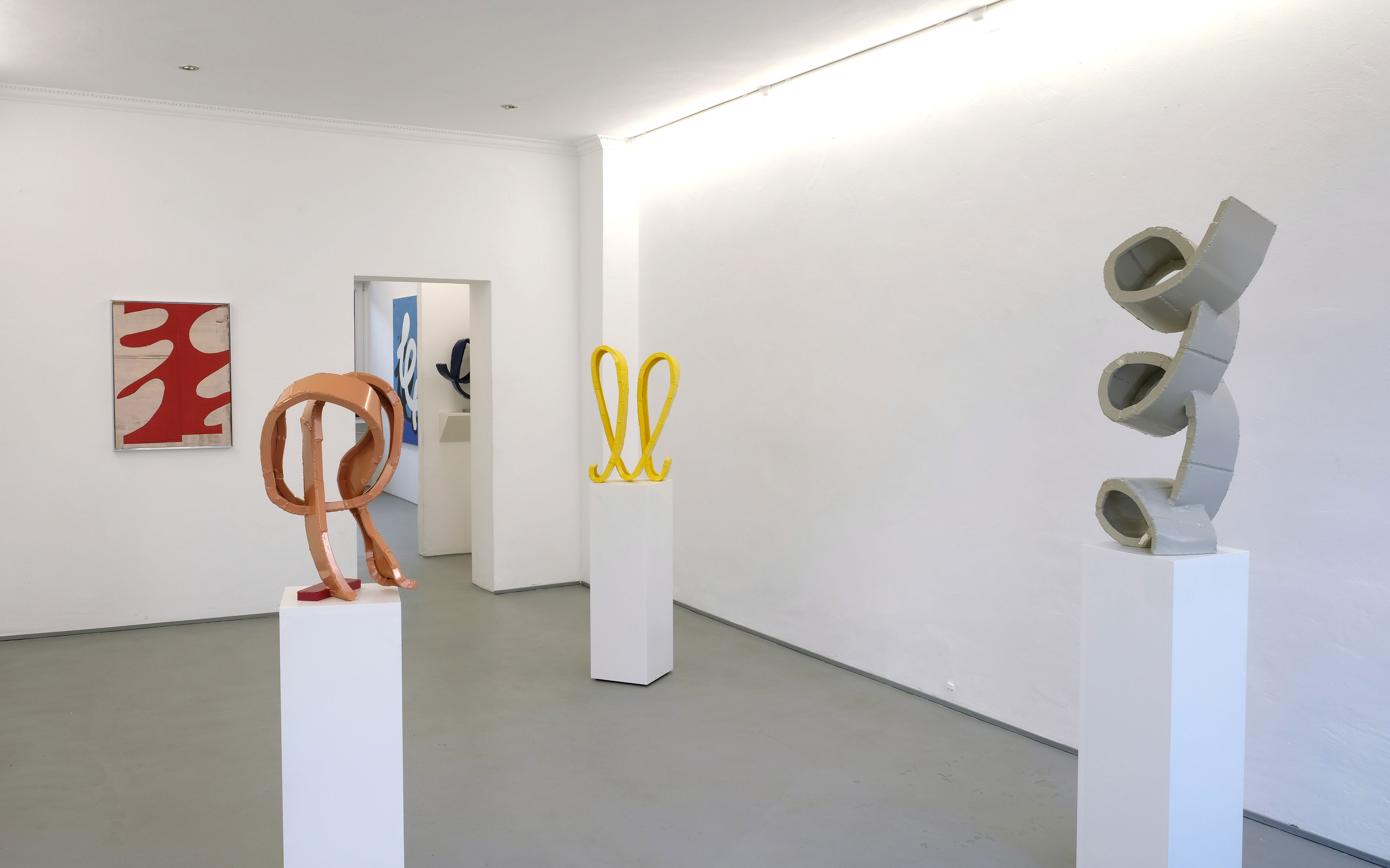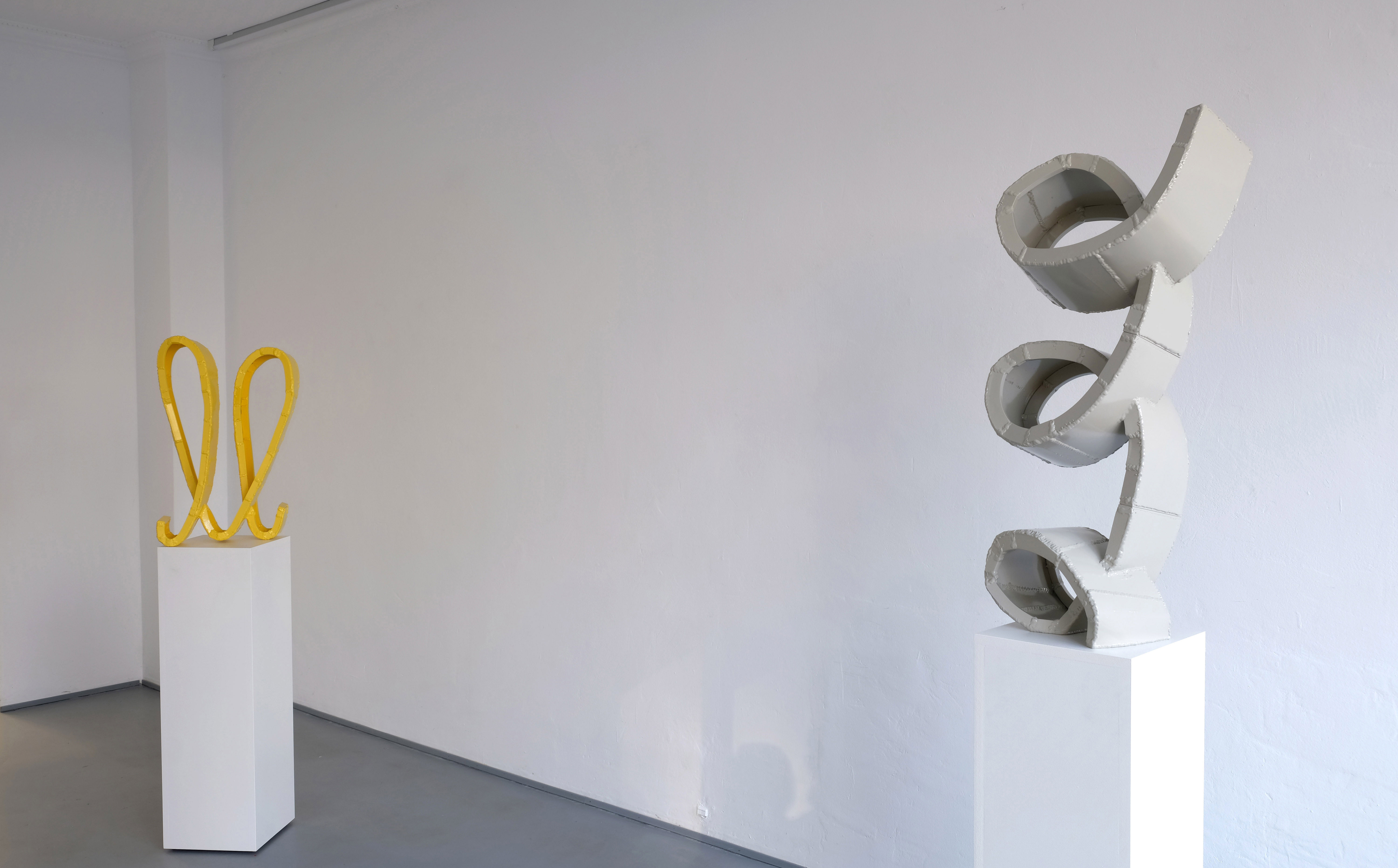 Die Galerie GRÖLLE zeigt mit Fandango neue Aluminiumskulpturen und Gemälde von Jay Gard. Die Arbeiten sind musikalisch und körperlich gedacht: schwungvolle Linien, offene Formen und rhythmische Bewegungen prägen Skulptur und Bild. Ausgehend von barocken Ornamenten entwickelte Gard eine eigenständige Formensprache zwischen Verspieltheit und präziser Konstruktion. Zuletzt realisierte er großformatige Arbeiten im öffentlichen Raum, darunter Plywood im Rahmen des Kulturhauptstadtjahres Chemnitz sowie eine monumentale Skulptur im Skulpturenpark Pilane in Schweden. Gard lebt und arbeitet in Berlin.